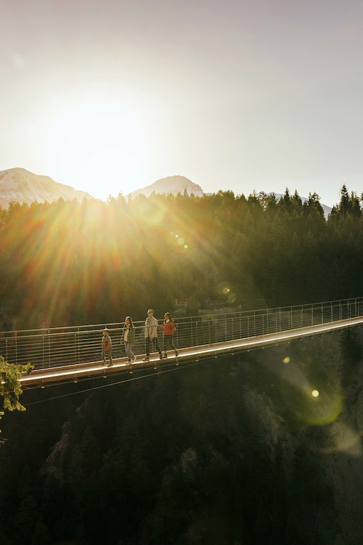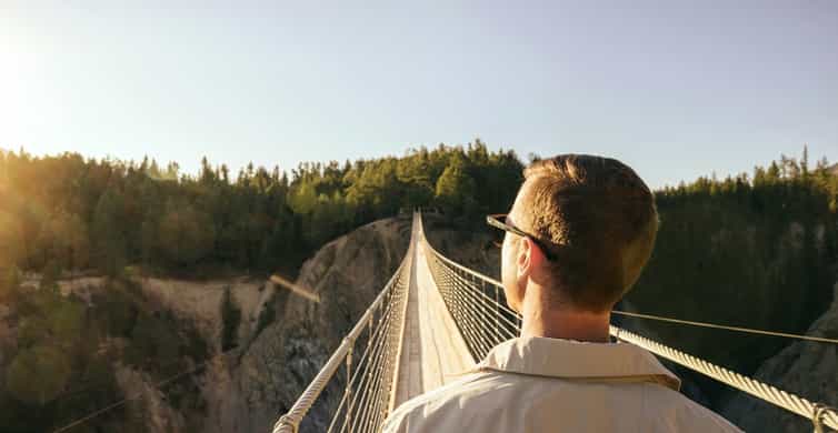 Rediscover the power of nature by traversing two suspension bridges over an expansive canyon.